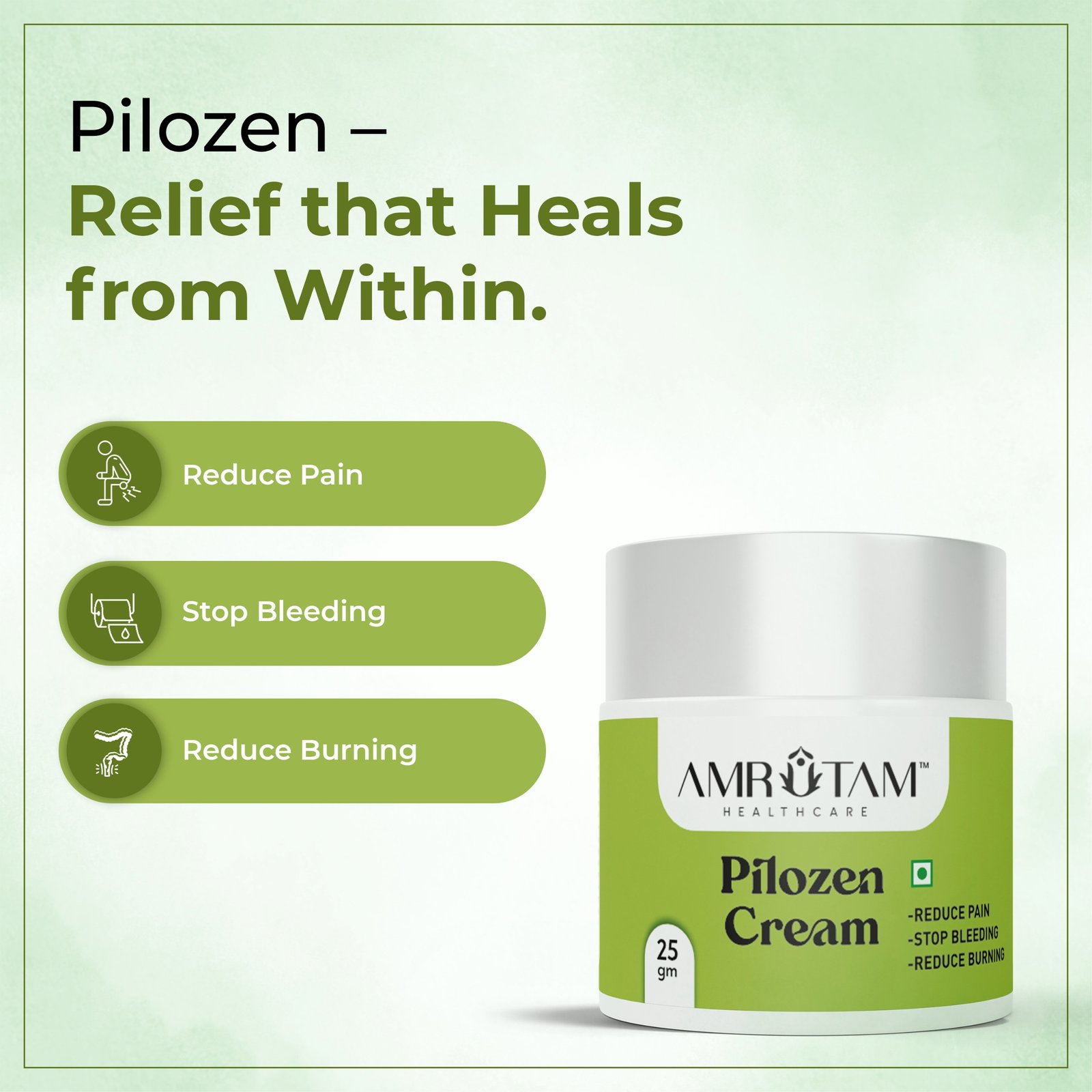Relieve pain, itching, and discomfort caused by piles with Pilozen Cream — a natural Ayurvedic formula for fast, effective relief.